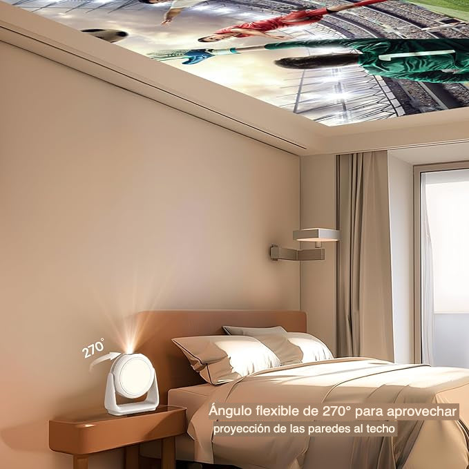 El proyector VEVSHAO A10 ofrece imágenes nítidas FULL HD 4K y sonido de alta calidad para transformar cualquier espacio en un cine personal. Con aplicaciones inteligentes, disfruta de tus plataformas favoritas con facilidad.